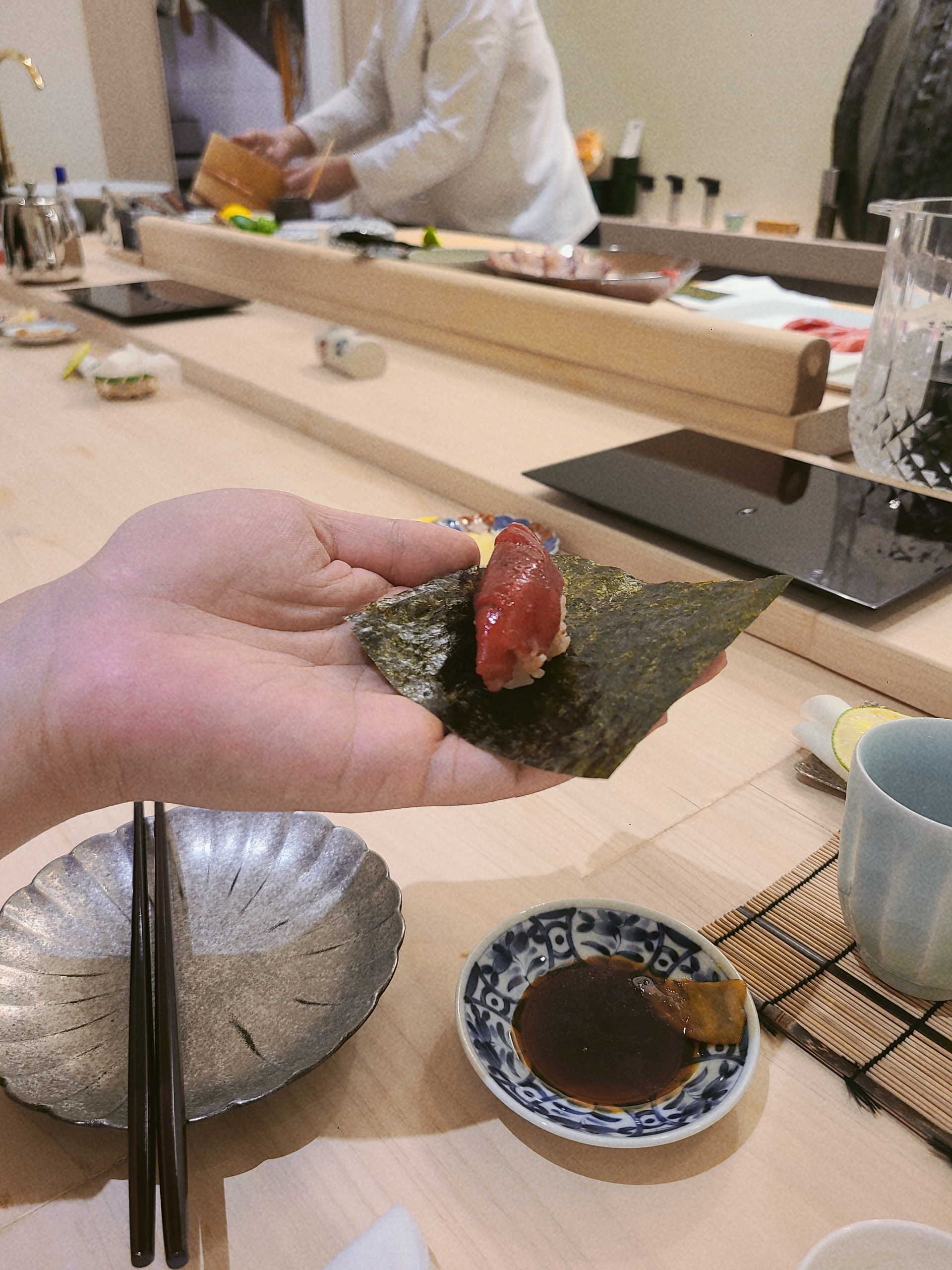 12. 참치대뱃살 (오오토로 쟈바라). 손으로 먹어야 해서 사진을 못찍었네요;;