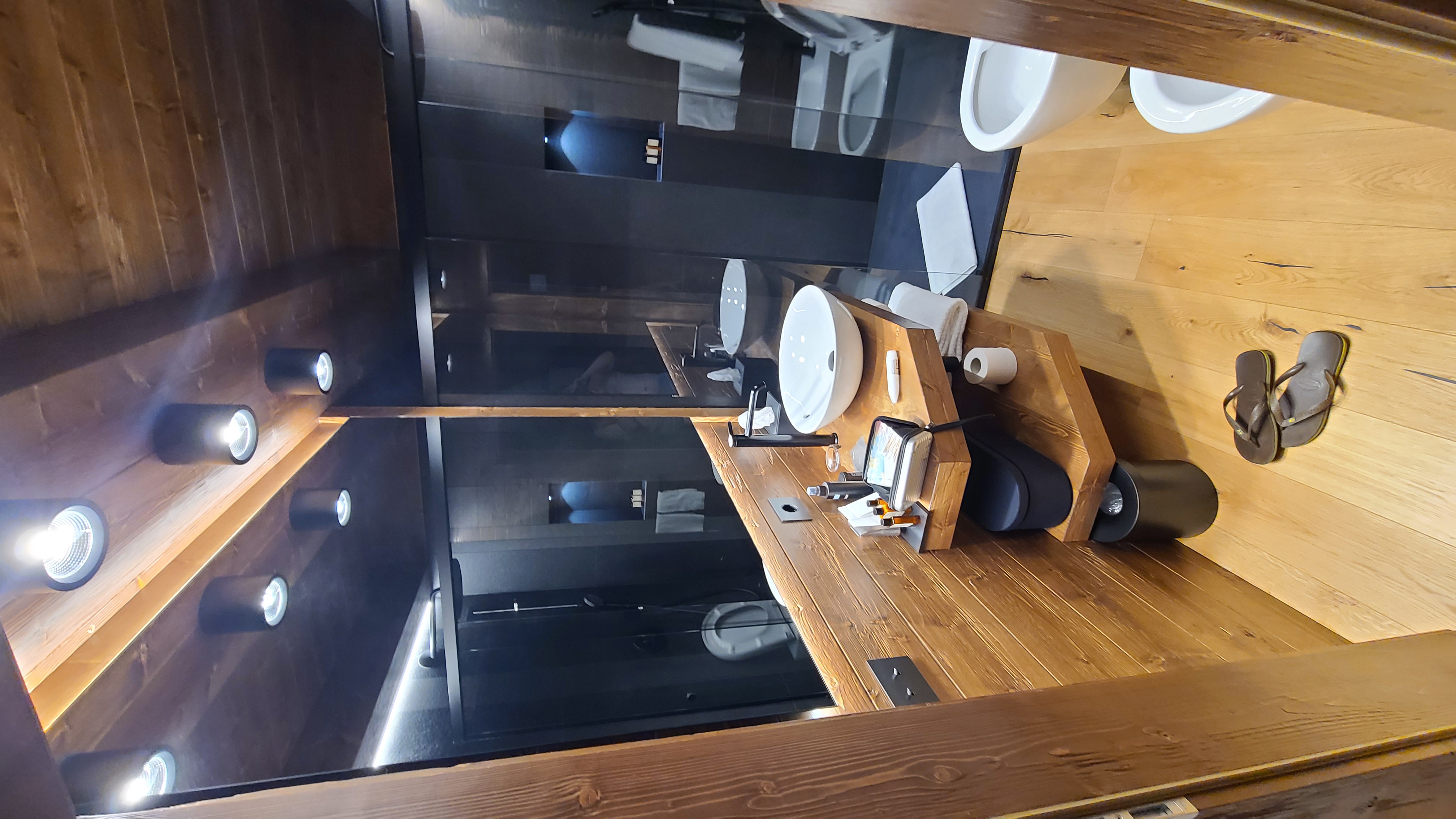 장점 : 전통숙소느낌의 원목과 블랙톤의 스틸소재 믹스